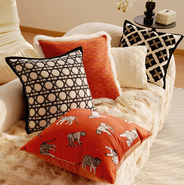French Style Light Luxury High-End Black Living Room Sofa Cushion Vintage Cushion Rose Red Bay Window Cushion Lumbar Pillow