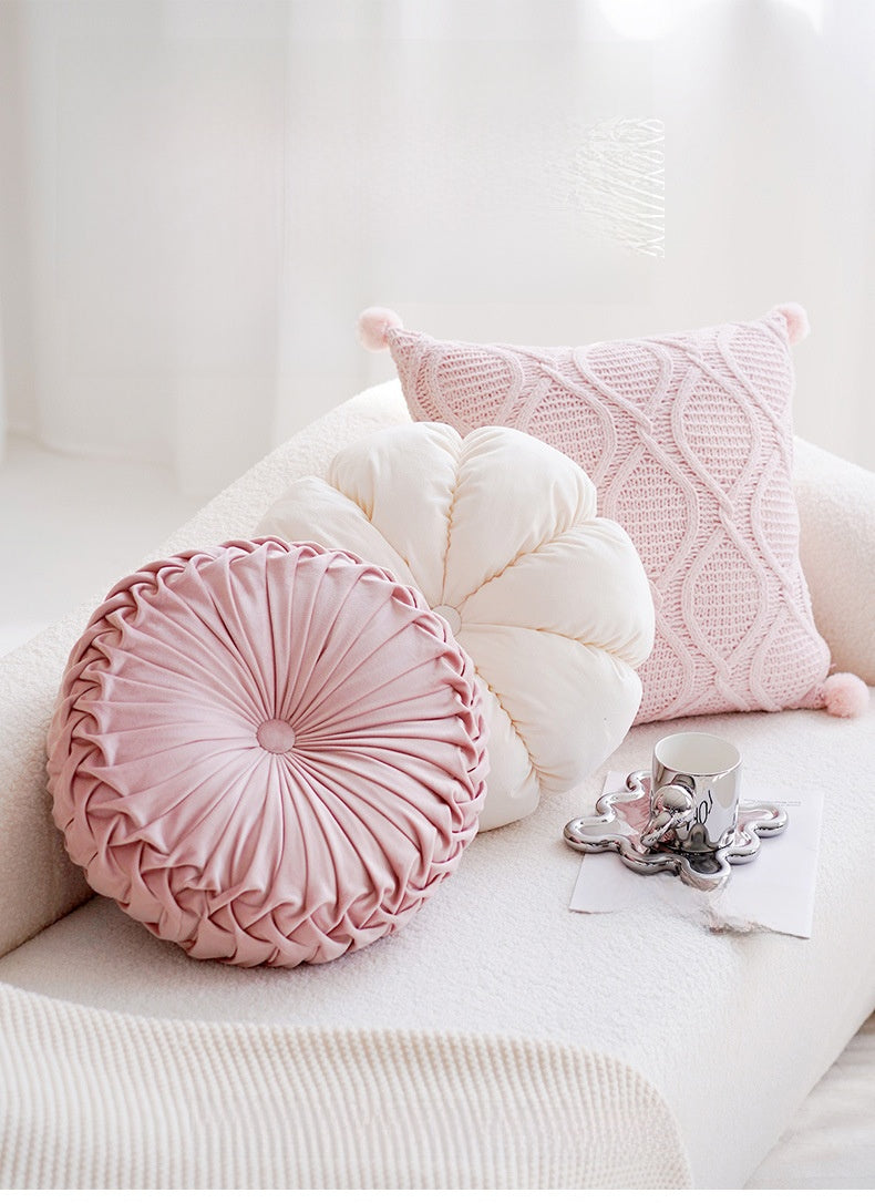 Pink Velvet Throw Pillow – Round Floor Cushion for Girl’s Room or Living Room-No insert