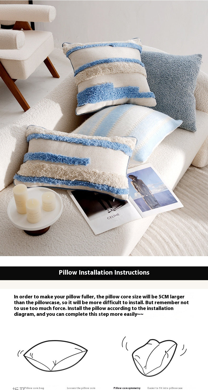 Vintage Cartoon Cream Blue Cushion Pillow Sofa Pillow Cover Bed